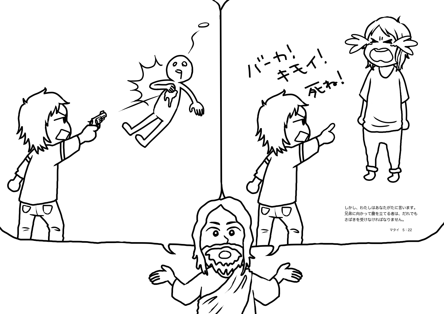 イラスト・ぬりえ兄弟に向かって腹を立てる者は マンガをダウンロード しかし、わたしはあなたがたに言う。 兄弟に対して怒る者は、だれでも裁判を受けねばならない。 (口語訳聖書 マタイ 5:22) シェアする