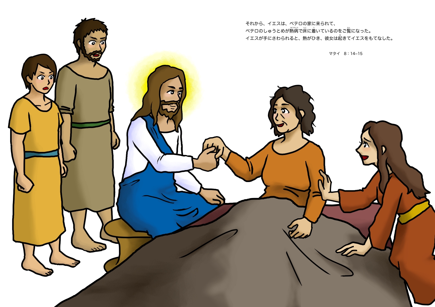 イエスが手にさわられると、熱がひき、