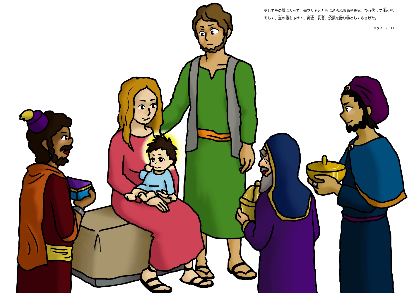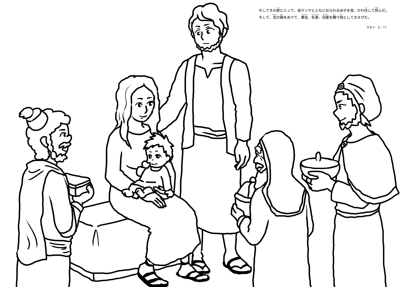 イラスト・ぬりえ博士たちの礼拝 イラストをダウンロード ぬりえをダウンロード そしてその家に入って、母マリヤとともにおられる幼子を見、 ひれ伏して拝んだ。 そして、宝の箱をあけて、黄金、乳香、没薬を贈り物としてささげた。 (新改訳聖書 マタイ 2:11) シェアする