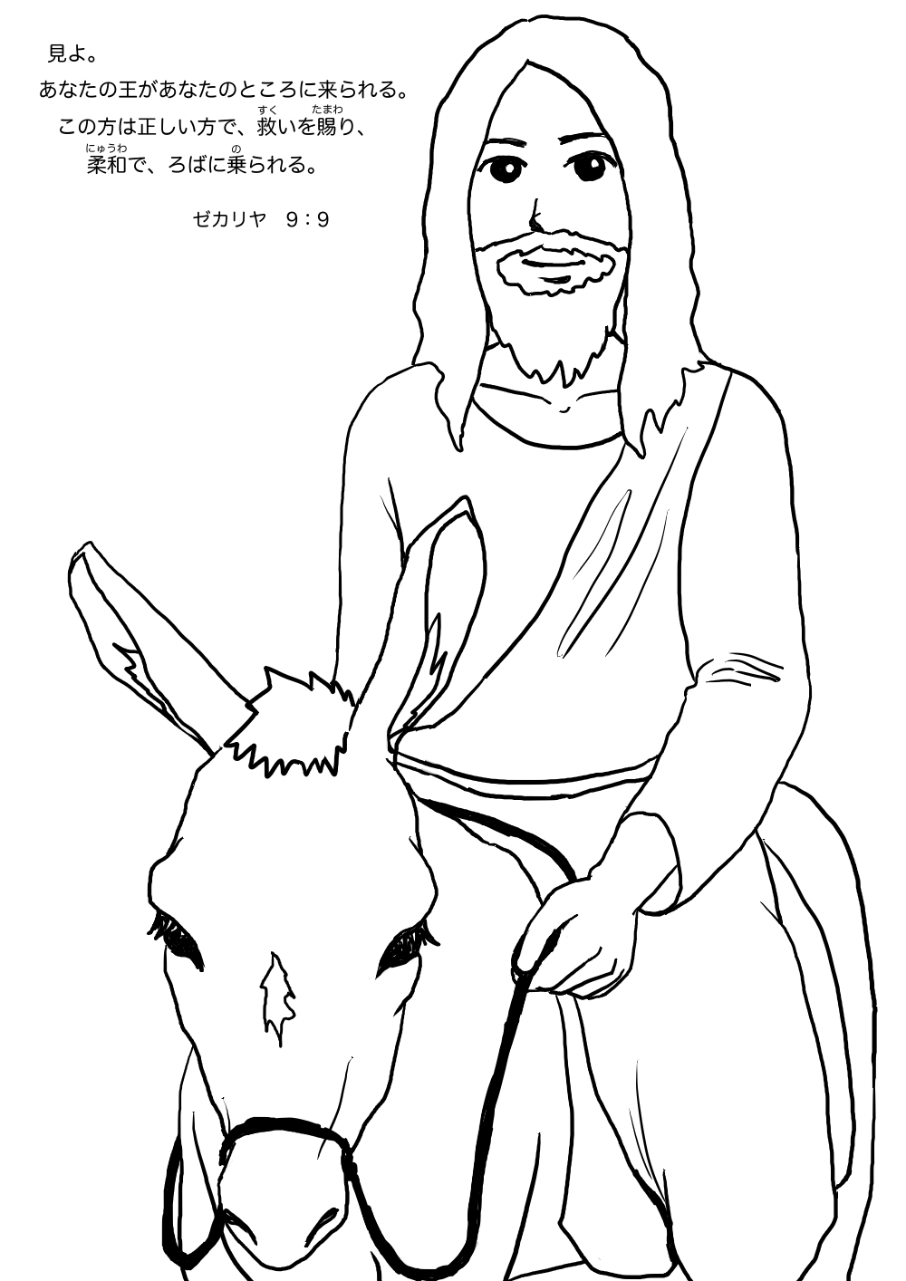 - 「ろばの子に乗って」のぬりえをダウンロード(JPG)
