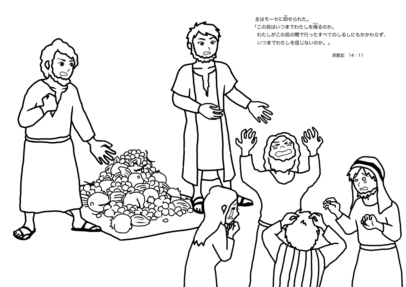 神さまがカナンというすばらしい土地を用意してくださったにもかかわらず、そこに強そうな民族が住んでいると知って「もうダメだぁ〜!」と泣きわめいてしまったイスラエルの人々。